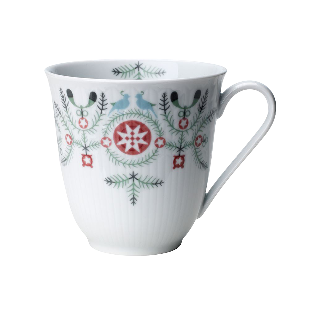 I en klassisk design med vintrigt mönster. För att skapa en enhetlig och snygg bordsduktning kan du kombinera muggen med andra produkter ur samma serie (Swedish Grace).